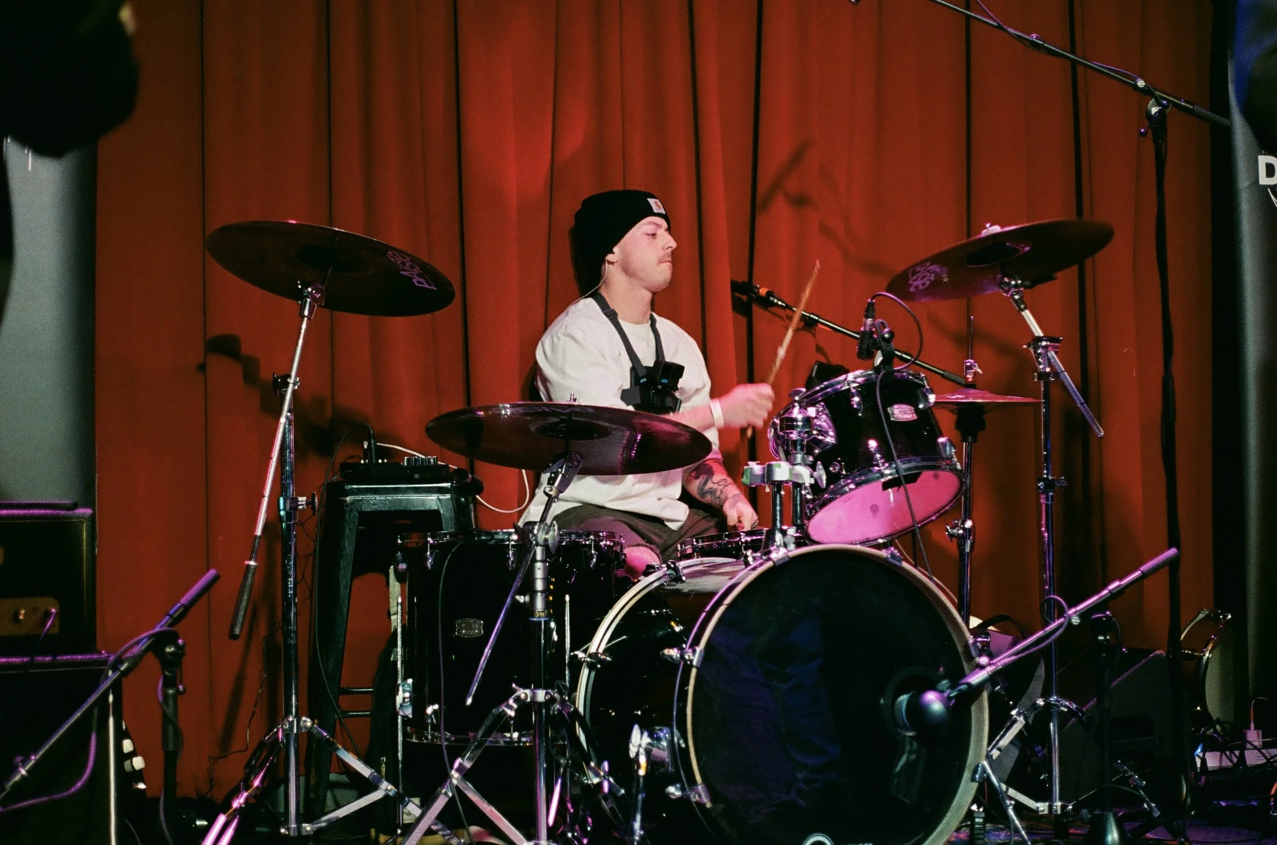 ”Scrape” stood out as one of the most fun moments of the night. Upbeat and slightly nostalgic, it was the kind of song that makes you want to move without realizing it. Fo Faniels also shared unreleased material from an upcoming album, including “Black” and “The Rain”. While “The Rain” slowed the pace slightly, it still landed with weight, driven by full guitars and steady, deliberate drums.