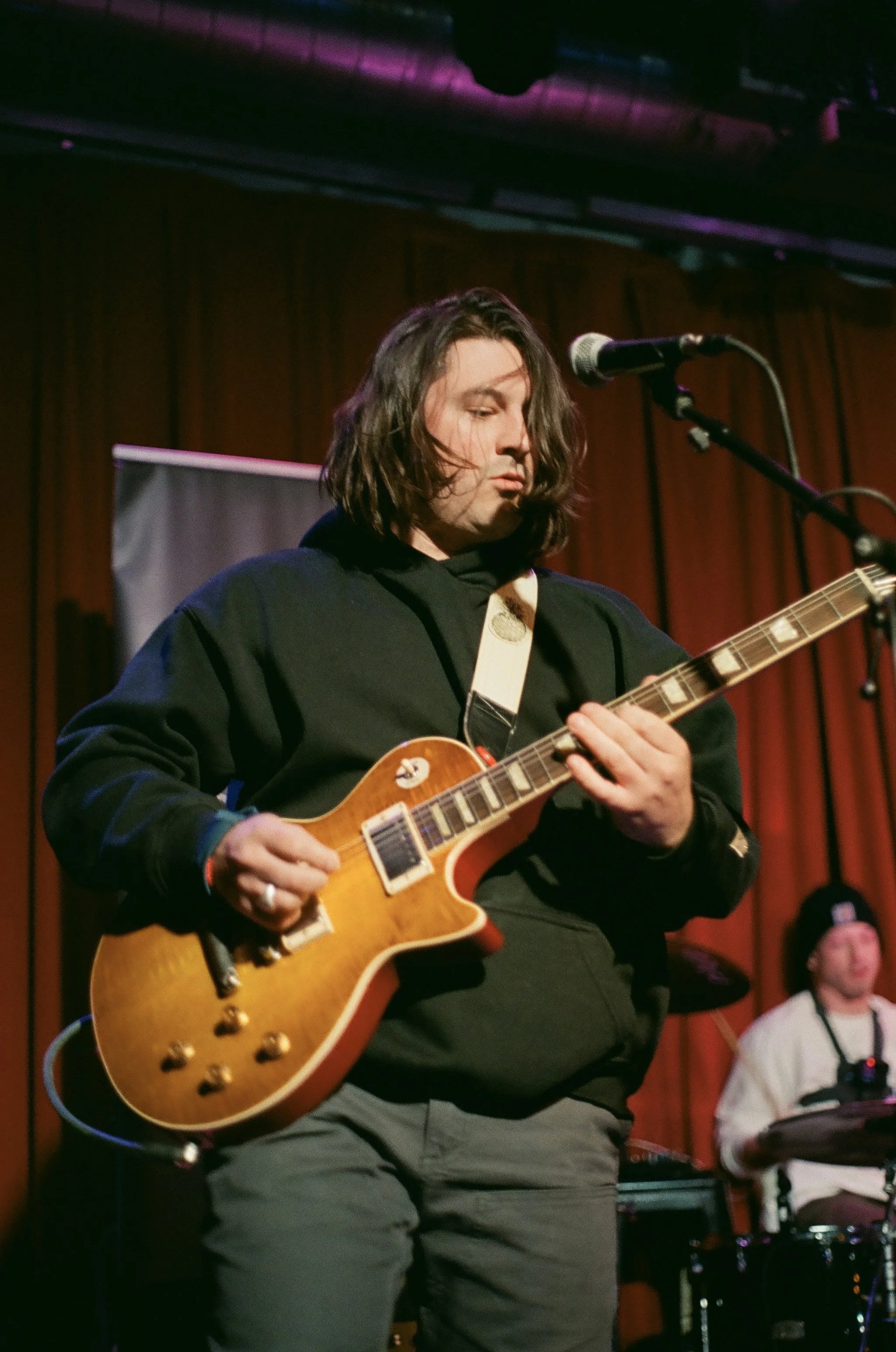 The night opened with Tyler Drager of The Dun Flower, performing solo after his bandmates were unable to make it. What could have felt sparse became a memorable introduction. Drager kept the crowd laughing, sarcastically describing one song as “insanely creative” because it was just the same chorus repeated three times, and introducing another about his ex-wife, whose marriage to him lasted only two weeks. His dry humor and candid commentary gave the set a light, conversational feel that quickly pulled the room in.