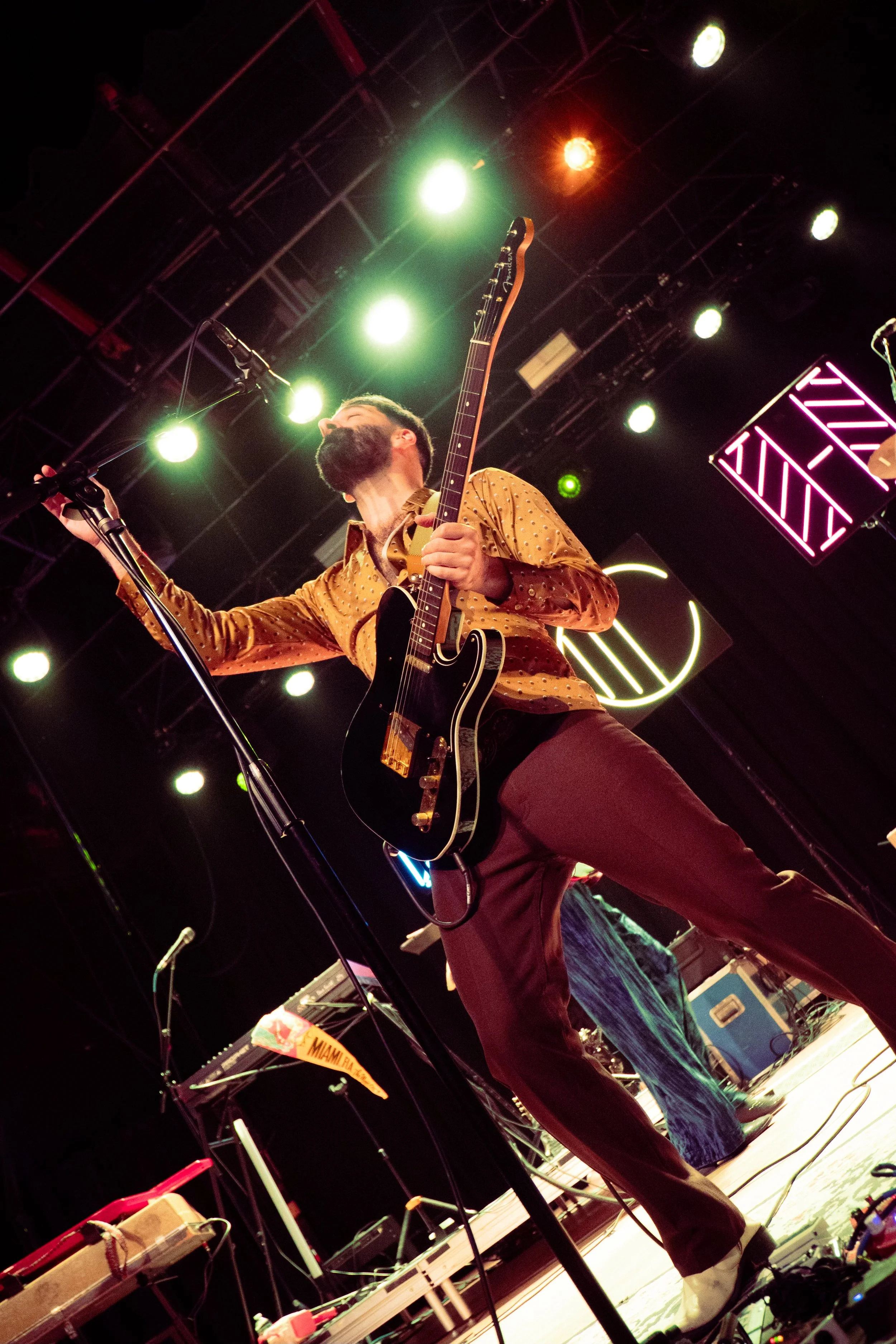 As the set continued, Magic City Hippies kept up the momentum with unforgettable moments like the instrumental break in “Fanfare” during which the band appeared to reach a flow state with an effortlessly synchronised jam. A standout moment in the set was the band’s live debut of “Little Bit of Love” which featured a bouncy guitar riff and an equally bouncy crowd. The glowing pink stage lights faded to purple then blue as the band broke it down and the rhythm progressed to orderly chaos. The groovy tune had people dancing in the isles of the venue without a care. “Let it Ring” gave John Coughlin’s vocals a chance to shine, with his deeper tone calming the crowd in anticipation for fan favorite “Limestone” which was a unique acoustic experience toned down from the recorded version.