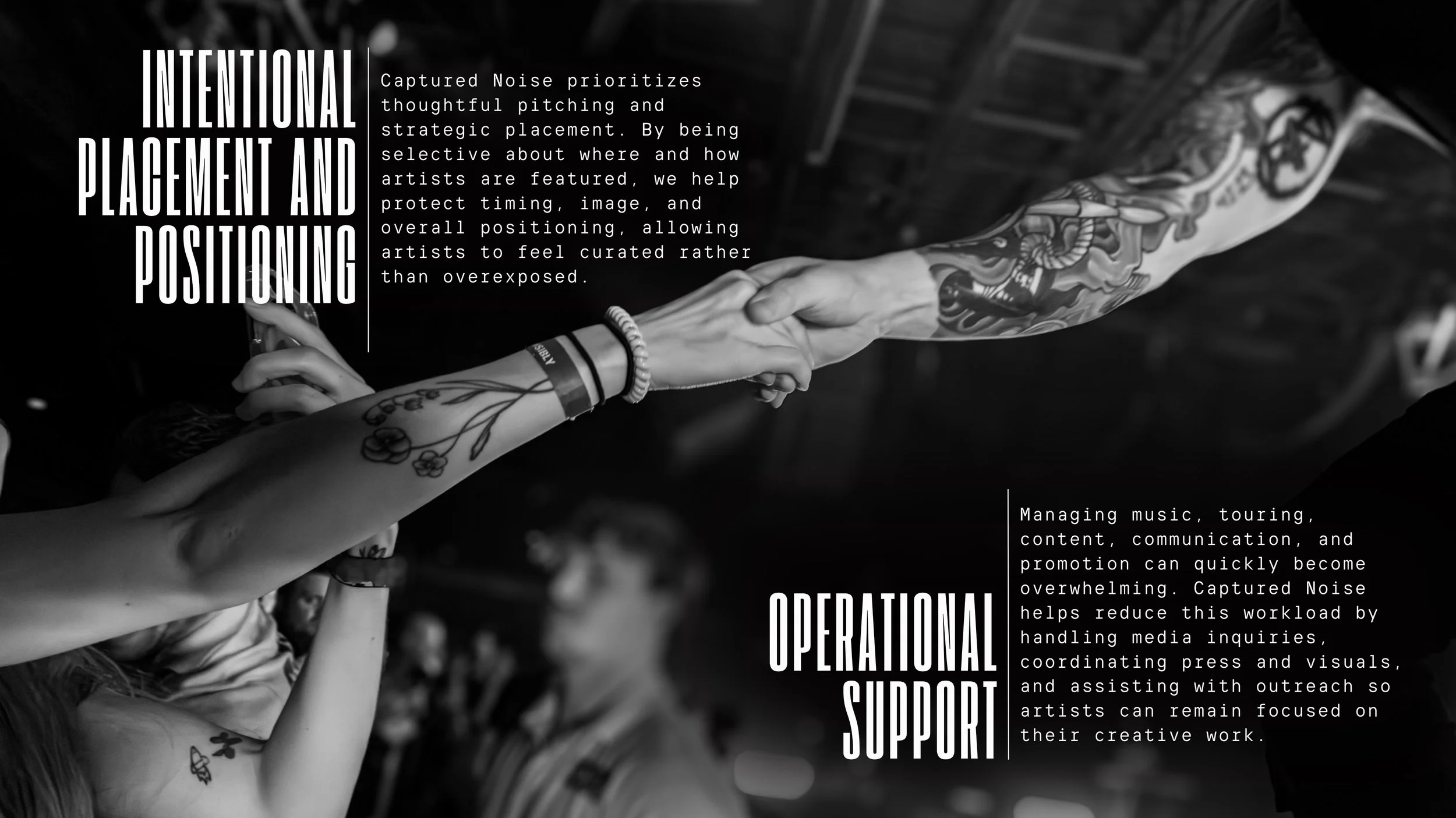 We exist to help artists show up professionally, consistently, and authentically—both on stage and online. We work closely with independent and emerging artists to build strong visual identities, elevate live presence, and create media that actually connects with fans and industry professionals.