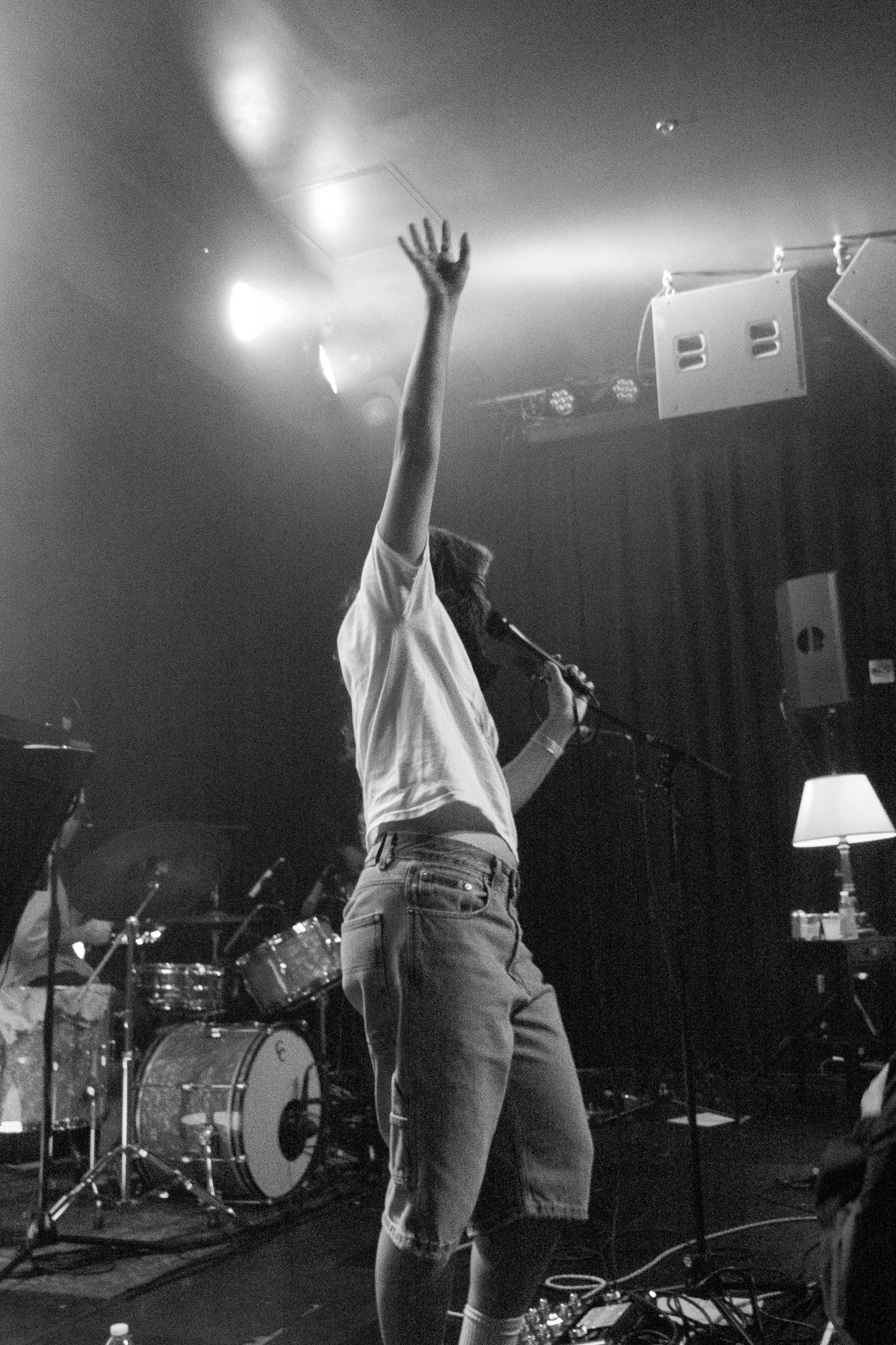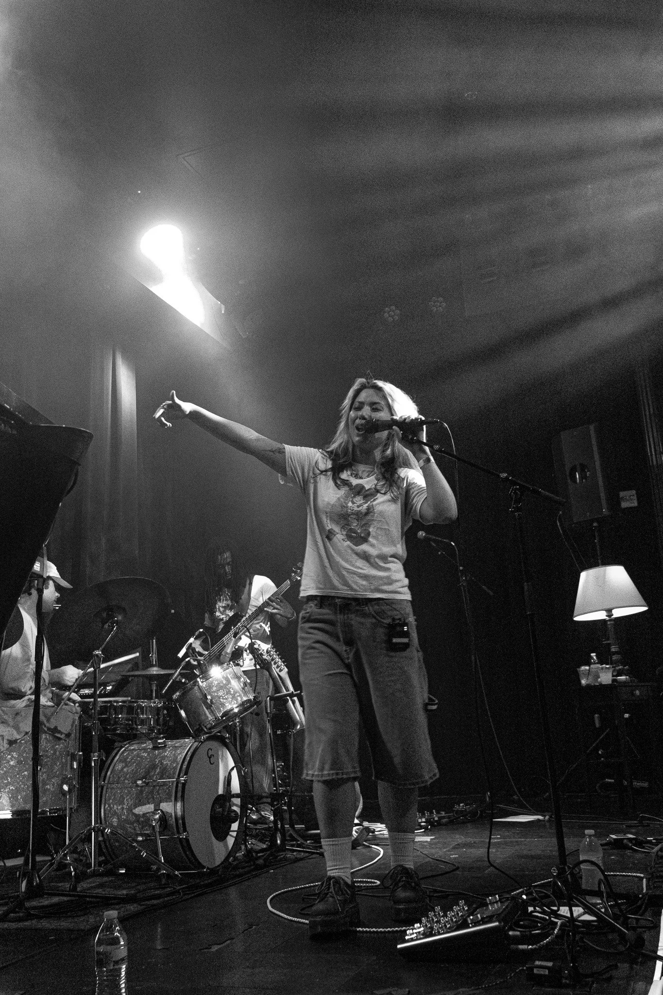 The set opened with “Grade A,” “Window,” and “Calvaire,” instantly pulling everyone in. From the start, she blended languages in a natural way. Fan favorites like “Velcro” and “Uneasy” kept the energy up, while slower tracks like “Adore Me” and “Cotton Candy” created quiet, intimate moments where her French lyrics, in particular, made the songs feel hushed and confessional. The biggest surprise was her and her band’s cover of Alex G’s “Runner” which she called one of her favorites before singing it, and the crowd responded as if they were in on a personal secret.